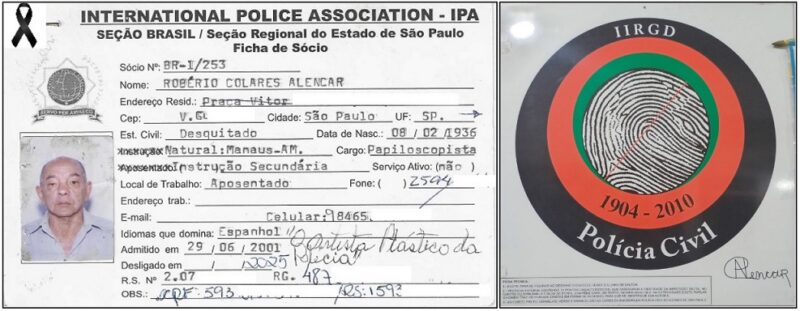 Chegou-nos ao conhecimento na data de hoje, 7/4, a notícia do falecimento do Papiloscopista Policial, ROBÉRIO COLARES ALENCAR, que foi presidente da Associação dos Papiloscopistas por vários anos seguidos. Natural de Manaus – AM, faleceu aos 89 anos, lúcido e atuante nas artes plásticas.