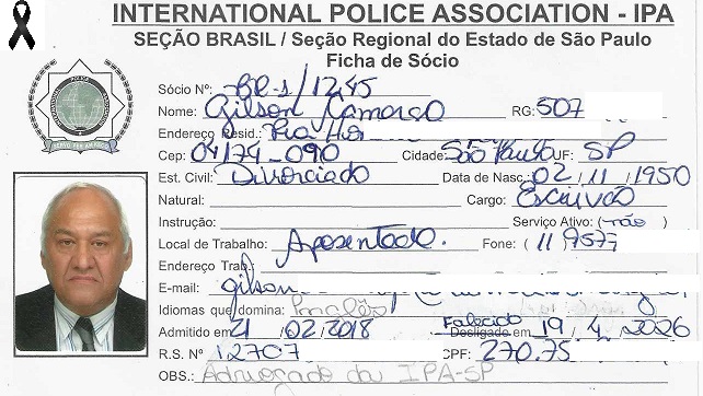 Dr. Gilson depois de aposentado no cargo passou a advogar, tendo patrocinado causas desta IPA-SP e de associados, sempre com zelo e dedicação. Ele era nosso associado desde 2018.